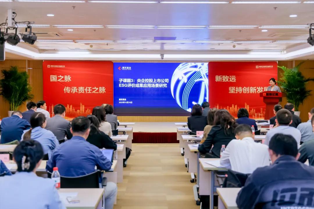 2025年10月16日下午,為促進(jìn)央企ESG研究成果落地應(yīng)用,充分發(fā)揮央企ESG評(píng)價(jià)和投資應(yīng)用對央企可持續(xù)發(fā)展的引導(dǎo)作用,由國務(wù)院國資委研究中心指導(dǎo)、國新證券股份有限公司承辦的《央企控股上市公司ESG評(píng)價(jià)體系研究》課題發(fā)布會(huì)在京隆重召開。嘉實(shí)基金作為本次課題發(fā)布會(huì)的支持單位和子課題三的牽頭單位,負(fù)責(zé)央企控股上市公司ESG評(píng)價(jià)結(jié)果的資本市場應(yīng)用研究,并在會(huì)上分享了子課題三的研究成果。