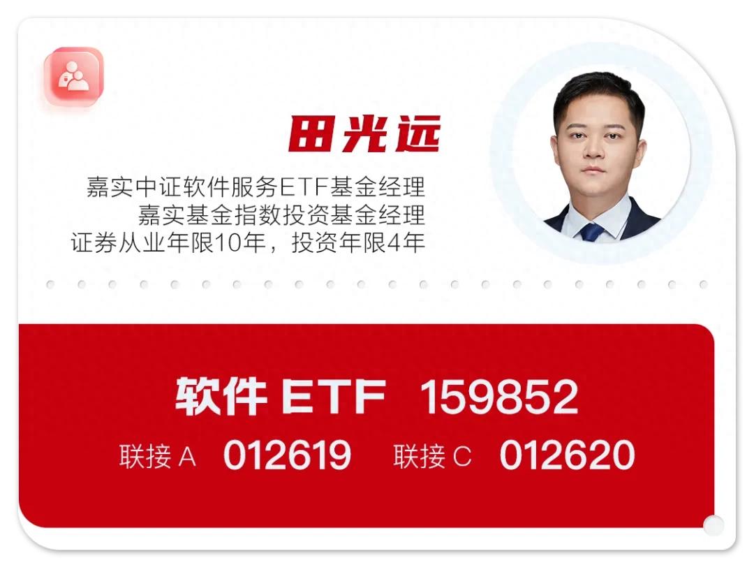 本期《投資筆記》由嘉實基金旗下軟件ETF(159852,聯(lián)接A/C:012619/012620)基金經(jīng)理田光遠為大家分享。